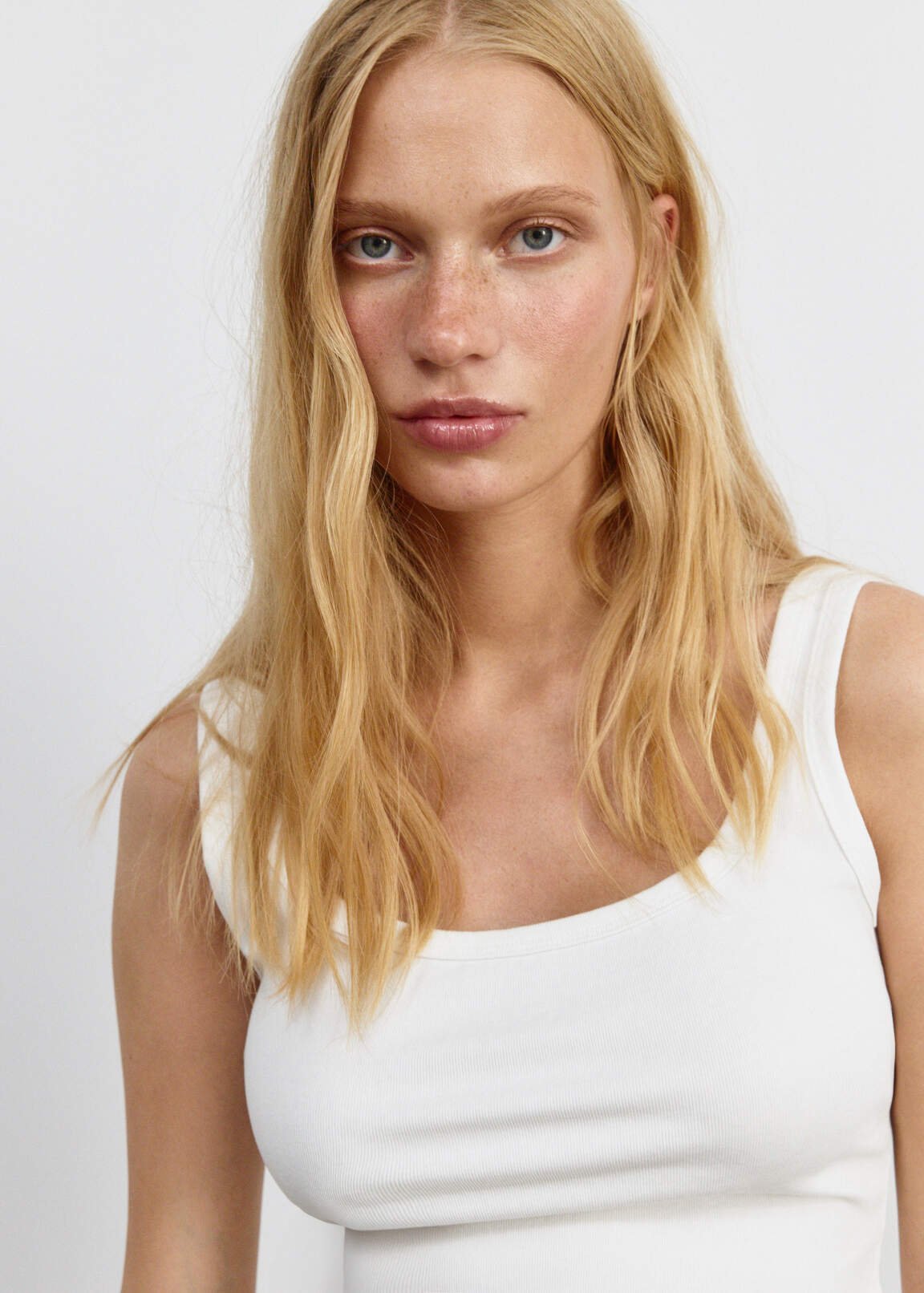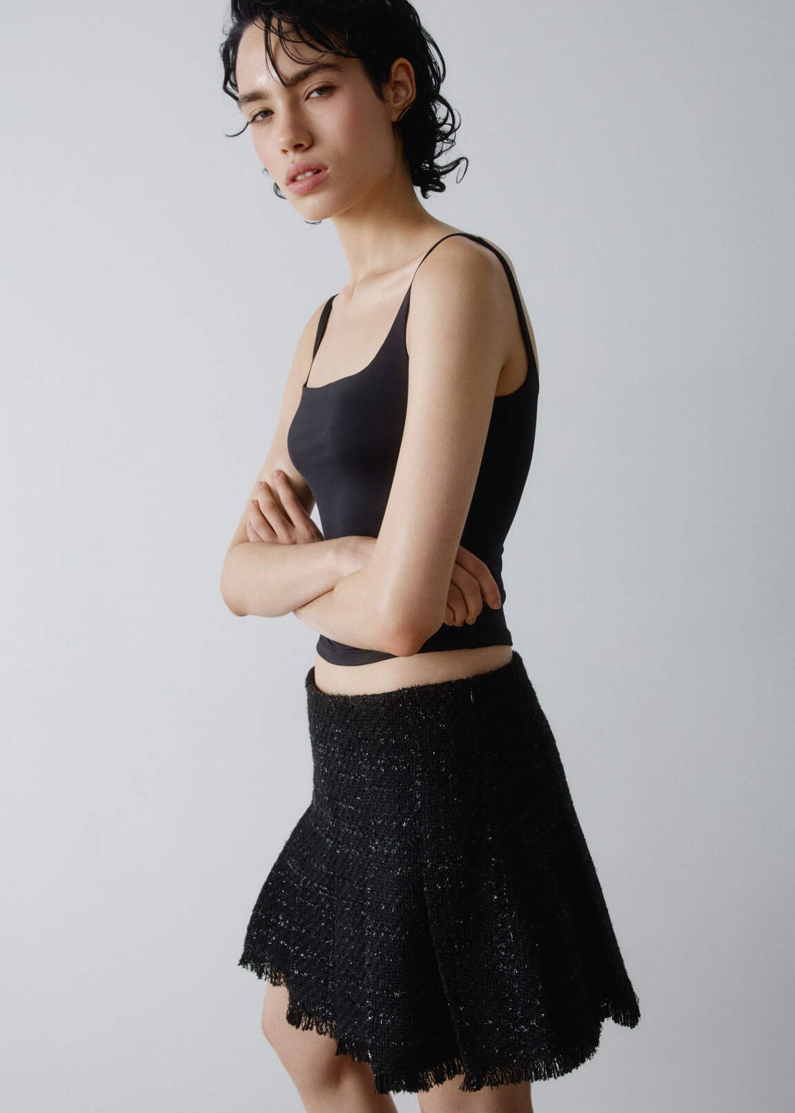 A cropped top with thin straps and a square neckline from the SELA Young line. Made of soft, stretchy knit fabric, it has a fitted…