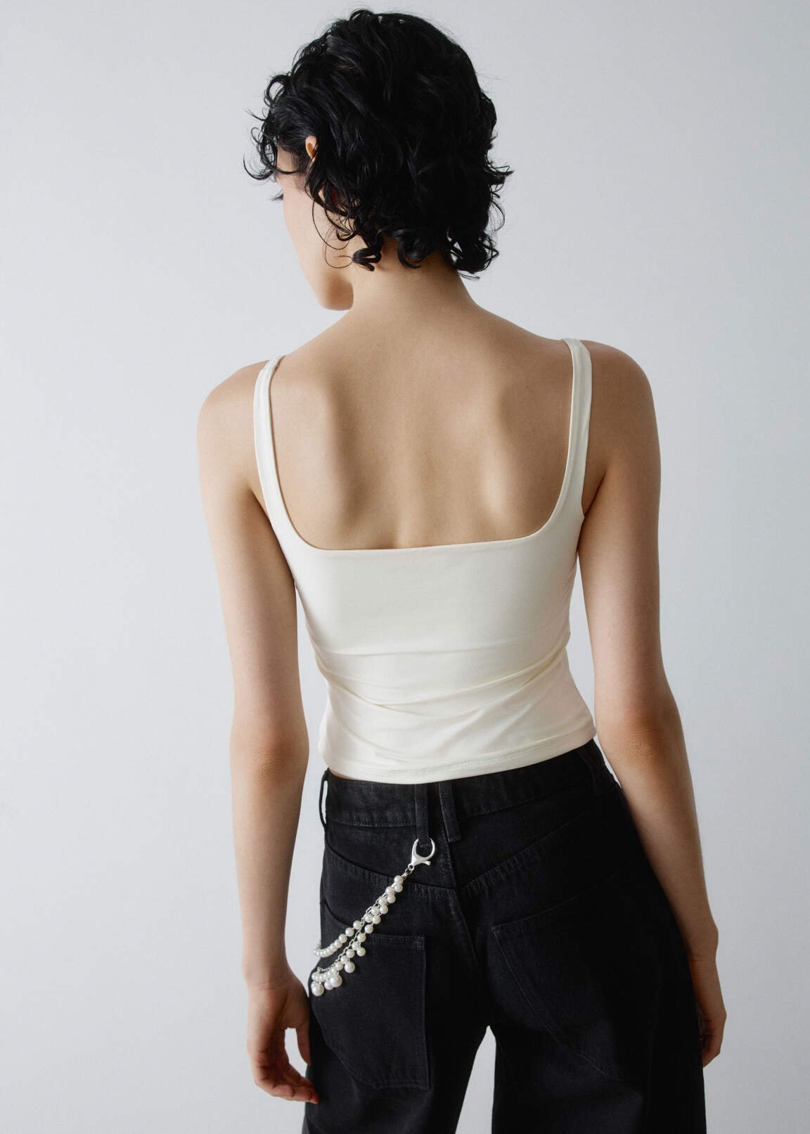 A cropped top with thin straps and a square neckline from the Young line. Made from soft, stretchy knit fabric with a fitted silhouette and…