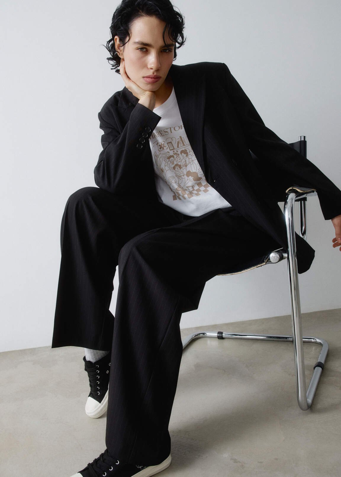 This loose-fitting, single-breasted jacket in soft herringbone suiting with a melange effect is from the SELA ARCHIVE collection. Dropped shoulders with shoulder pads. It features…