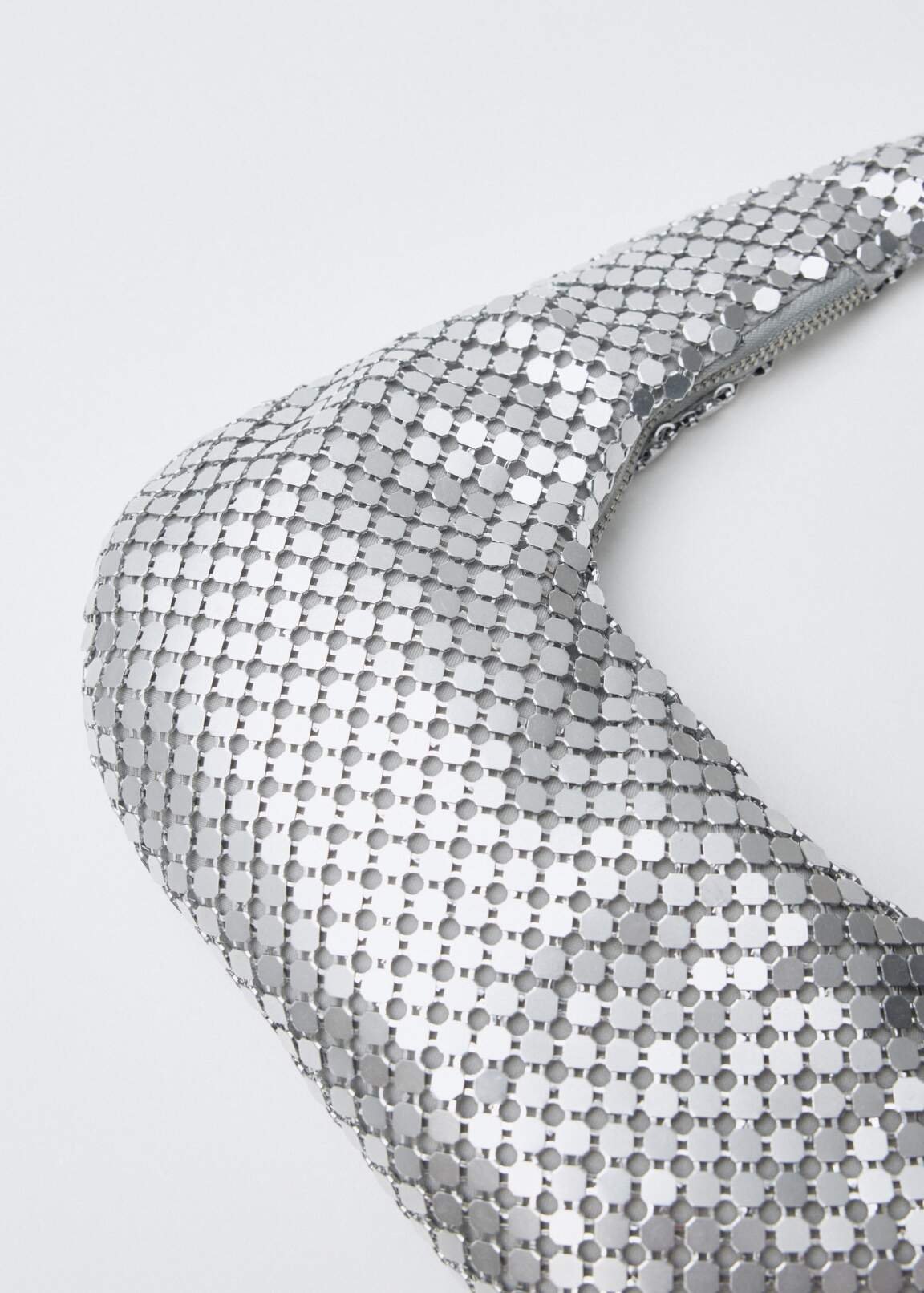 A small metal hobo bag with one roomy zipped compartment and a lined lining. Dimensions: 27 x 3 x 30 cm. New Year’s collection.